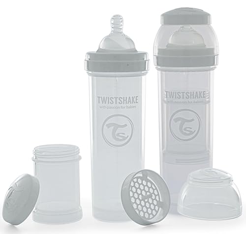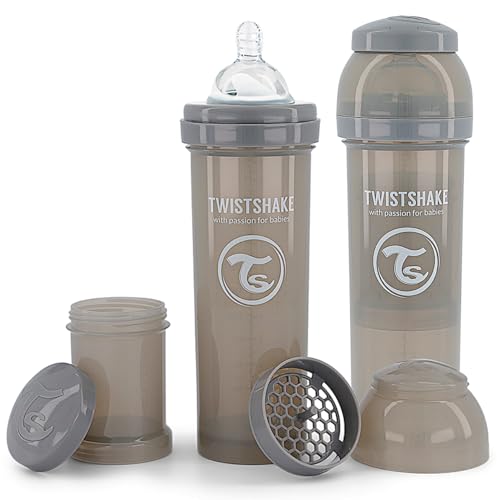 Twistshake Biberon Anti-Colique Avec Récipient Pour Lait En Poudre Et Mélangeur - 2x 330ml | Tétine En Silicone À Écoulement Rapide | Biberon Sans BPA | 4+ Mois | Gris
