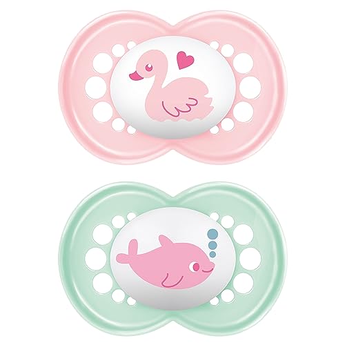 MAM Lot de 2 tétines originales pour bébé de 6 à 16 mois - 94% d'acceptation - Adaptées à l'allaitement - Recommandé par les sages-femmes - Doux pour les dents - Silicone SkinSoft - Cygne/dauphin