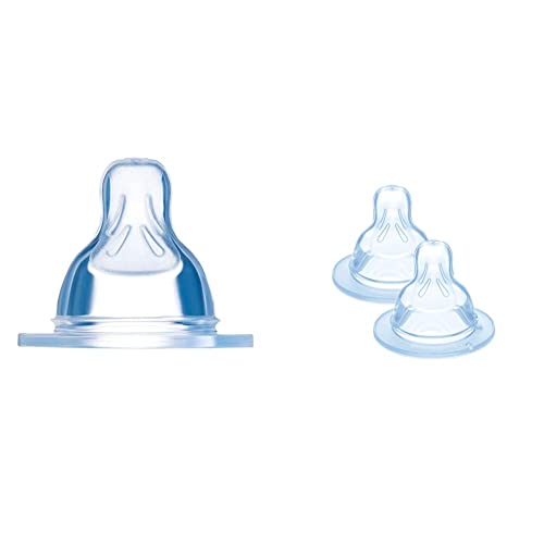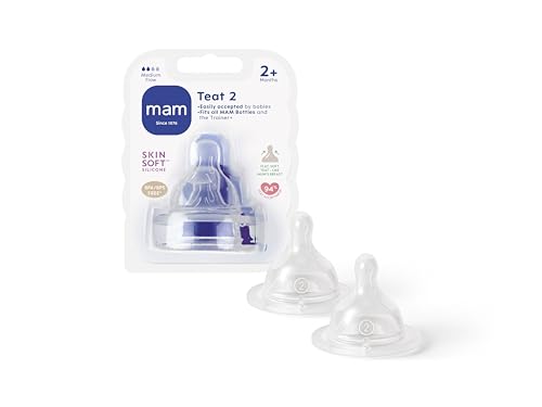 MAM Tétines pour biberon 2+ mois (2 pièces) – Lot de 2 tétines en silicone débit 2 vitesse moyenne – Tétine plate et ultra-douce pour bébé