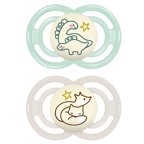 MAM Perfect Night Lot de tétines pour bébé, brillantes dans le noir, adaptées aux dents, fabriquées à partir de matériaux écologiques et renouvelables, avec boîte à tétine, pour bébé de 0 à 6 mois,