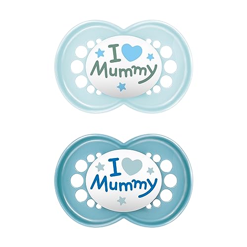 MAM Original Soothers Lot de 2 tétines pour bébé de 18 à 36 mois dans une boîte stérilisatrice pour sucette - Matériaux durables - Accessoires pour bébé - Bleu (différents modèles)