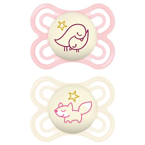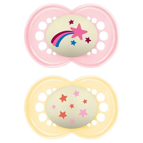 MAM Original Night Soothers Lot de 2 tétines phosphorescentes dans un étui de stérilisateur, matériaux durables, accessoires pour bébé - Rose (différents modèles)