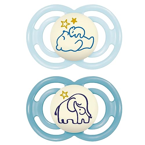 MAM Perfect Night Lot de 2 tétines, lumineuses dans le noir, respectueuses des dents, fabriquées à partir de matériaux durables et biologiques renouvelables, avec boîte à tétine, pour bébé de 16 mois