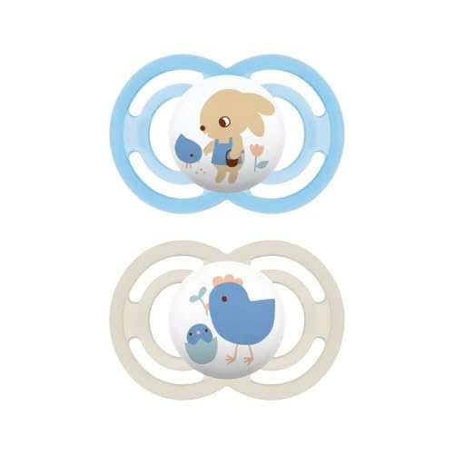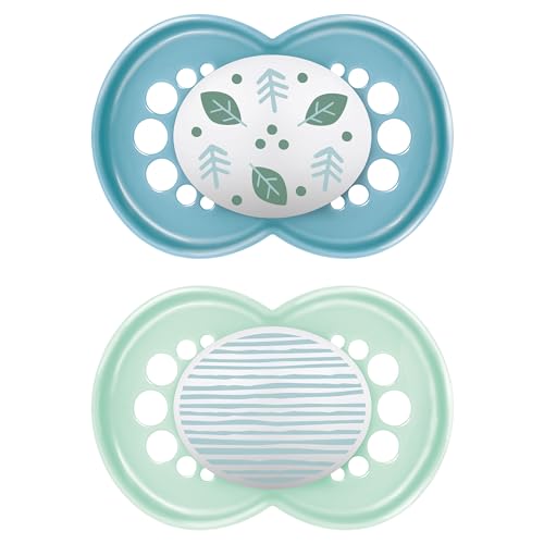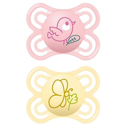 MAM Perfect Lot de 2 tétines pour un développement sain des dents et de la mâchoire, en matériaux durables et bio-renouvelables, avec boîte à tétine, pour bébé de 0 à 6 mois, motif oiseau/papillon