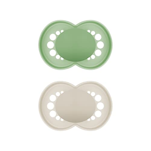 MAM Original Lot de 2 tétines, respectueuses des dents, fabriquées à partir de matériaux durables et biologiques renouvelables, en silicone MAM SkinSoft, avec boîte à tétine, pour bébé de 6 à 16 mois,