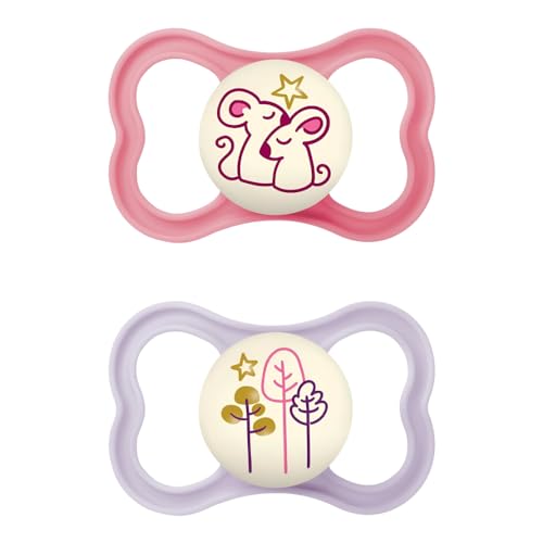 MAM MAM Air Lot de 2 tétines avec bouclier ventilé qui brille dans le noir, à partir de 6 mois, avec tétine symétrique, plate et flexible, facile d'acceptation, avec boîte auto-stérilisante, rose mat