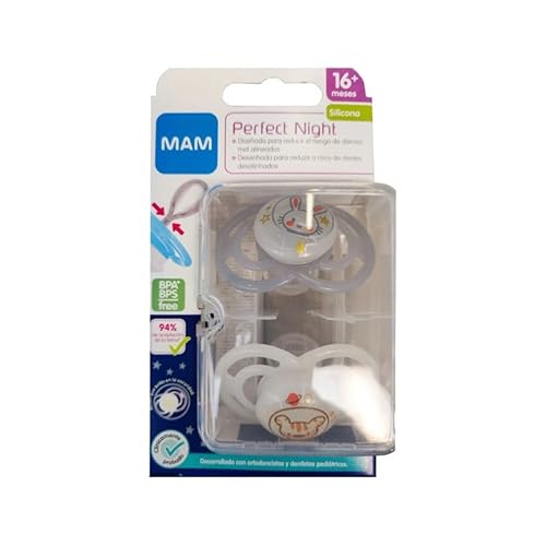 MAM MAM Perfect Lot de 2 tétines ultra fines et flexibles en silicone faciles à accepter avec boîte auto-stérilisante à partir de 16 mois