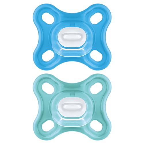 MAM Lot de 2 tétines confortables pour nouveau-né de 0 à 3 mois, livrées dans un étui de stérilisateur, matériaux durables, accessoires pour bébé pour nouveau-né, bleu (différents modèles)