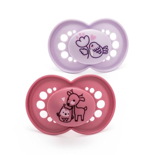MAM Pure Lot de 2 tétines pour bébé en matériau durable et bio-renouvelable, avec boîte à tétines, 6 à 16 mois, motif cerf/oiseau, (82462322)