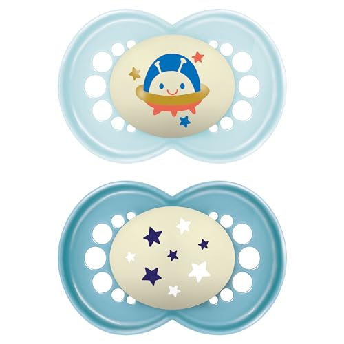 MAM Original Night Soothers Lot de 2 tétines phosphorescentes dans un étui de stérilisateur, matériaux durables, accessoires pour bébé - Bleu (différents modèles)