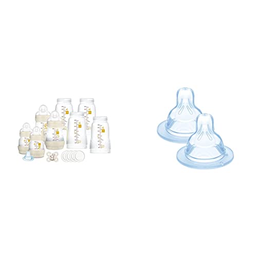 Mam Biberon Easy Start Anti-Colic, 8 Biberons en formats de 130 ml, 160 ml et 260 ml, 1 sucette Start Nanò, 4 tampons scellants, 1 bec, beige & Lot de 2 Tétines Anatomiques en Silicone 0+ mois