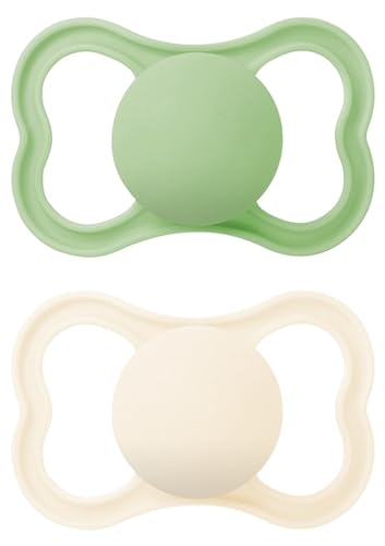 MAM Lot de 2 tétines avec bouclier ventilé, à partir de 16 mois, avec tétine symétrique, plate et flexible en silicone facilement acceptable, avec boîte auto-stérilisatrice, MAM Air, neutre mat, lot