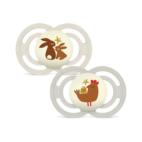MAM Perfect Night Lot de 2 tétines, phosphorescentes dans le noir, respectueuses des dents, en matériaux durables et biologiques renouvelables, avec boîte, pour bébé de 16 mois et plus,