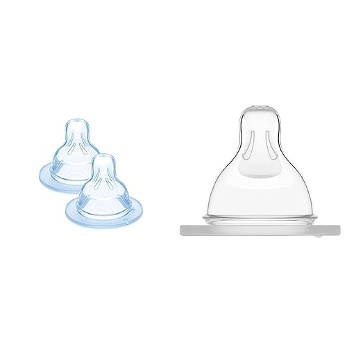 MAM Tétine pour biberon 0+ mois – Lot de 2 tétines en silicone débit 1 vitesse lente – Tétine plate et ultra-douce pour nouveau-nés