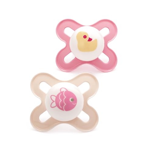 MAM Comfort Lot de 2 tétines, particulièrement petites et légères, pour bébés prématurés et nouveau-nés, en 100% silicone, avec tétine souple MAM SkinSoft et boîte à tétine, de 0 à 3 mois, rose