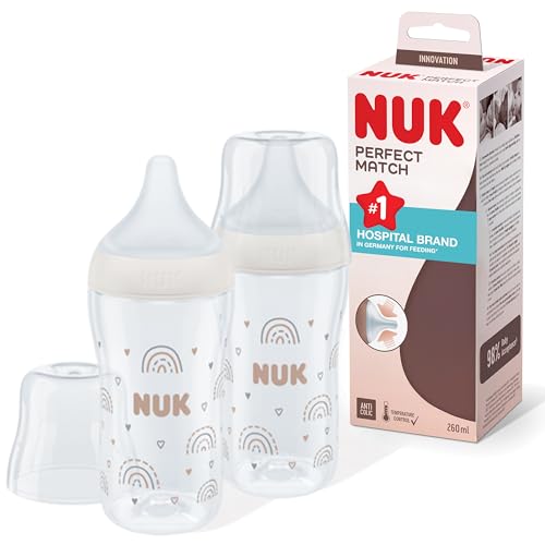 NUK Perfect Match Tétines de biberon | 3 mois et + | Tétines anti-coliques pour biberon | Silicone | Moyen | Lot de 2