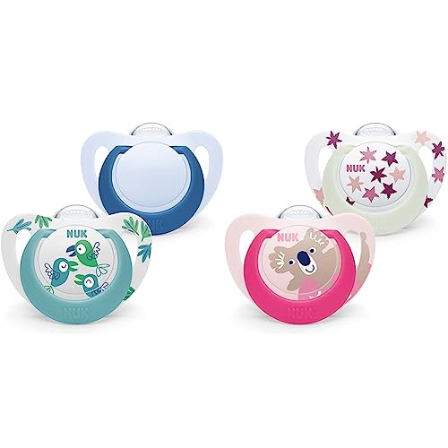 NUK Star Lot de 2 tétines pour bébé de 0 à 6 mois, jour et nuit, en silicone sans BPA, bleu koala