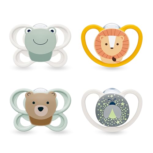 NUK First Choice Classic Day & Night Tétines pour bébé | 0-6 mois | Sucettes orthodontiques qui brillent dans le noir | 95% d’acceptation par les bébés** | Assorti | Lot de 4