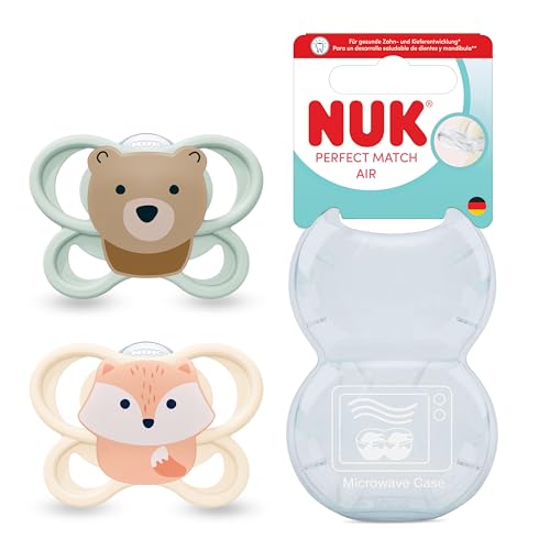 NUK Perfect Match Air tétines pour nouveau-nés | 0-2 mois | Sucettes orthodontiques favorisant l’aération et prévenant l’irritation | 95% d’acceptation par les bébés** | Renard/Ours | Lot de 2
