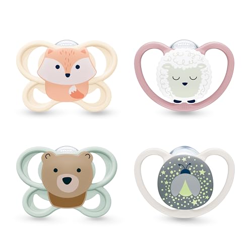 NUK First Choice Day & Night Tétines pour bébé | 0-6 mois | Sucettes orthodontiques phosphorescentes | Apaise 99% des bébés** | Assorti | Lot de 4
