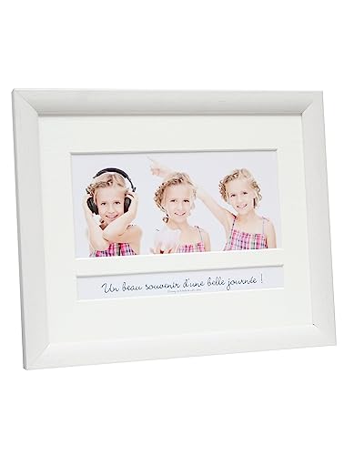 Deknudt Frames S54SF1 P1FR Cadre Photo avec Case Texte en Français Bois Peint Blanc 10 x 20 cm