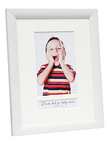 Deknudt Frames S54SF1 P1NL Cadre Photo avec Case Texte en Néerlandais Bois Peint Blanc 10 x 15 cm