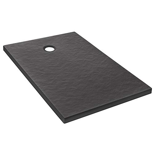 Jacob Delafon - Receveur de Douche Extra-Plat IPSO - Fabrication Française - Matériaux Recyclés - Sans Ressaut - Antidérapant, Antifongique - 140x90x4 cm - Texture Pierre, Gris Anthracite - E62302-AGM