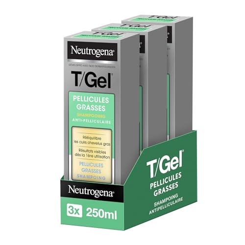 Neutrogena - Shampooing Antipelliculaire T/Gel Pellicules Grasses (3 x 250 ml) – Shampooing rééquilibrant pour les cuirs chevelus gras – Shampoing avec résultats visibles dès la 1ère utilisation