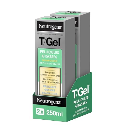 Neutrogena - Shampooing Antipelliculaire T/Gel Pellicules Grasses (2 x 250 ml) – Shampooing rééquilibrant pour les cuirs chevelus gras – Shampoing avec résultats visibles dès la 1ère utilisation