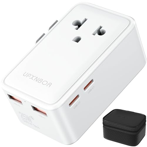 UPXNBOR Adaptateur de Voyage Universel avec PD 25 W USB-C & QC 18 W USB-A (2 A + 2 C), Adaptateur de Voyage Universel pour USA, UK, Angleterre, Japon, Thaïlande et Australie