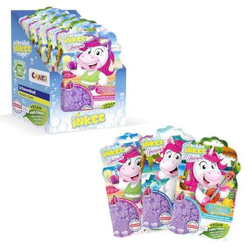 INKEE Bubble Bath Unicorn - Bain moussant pour enfants Licorne, Liquide pour mousse de bain VIOLET avec extrait de calendula & arôme de thé glacé au raisin, 15x 40g