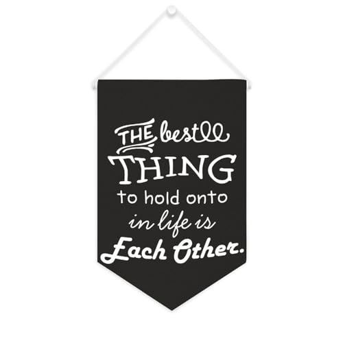 Bannière en toile « The Best Thing to Hold Onto in Life Is Each Other » - À suspendre au mur - Œuvre d'art décorative pour salon, chambre à coucher, bureau, cadeaux de vacances - 25,4 x 30,5 cm