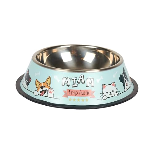 THE CONCEPT FACTORY - AN6097 - Gamelle Antidérapante pour Animaux de Compagnie D22cm en Acier Inoxydable - Idéale pour Croquettes et Pâtée - Facile à Nettoyer - Couleur Bleu Rose - Taille 22cm