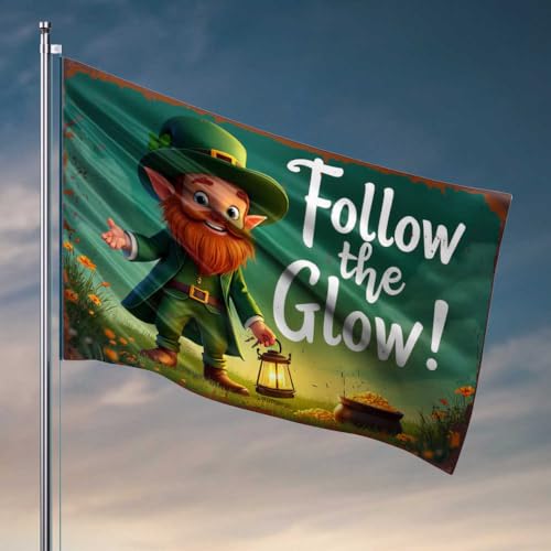 Drapeaux étranges Follow The Glow : A Leprechaun'S Magical Lantern Journey Flag Flags Weird Flags Lake House Decor (30 x 45 cm)