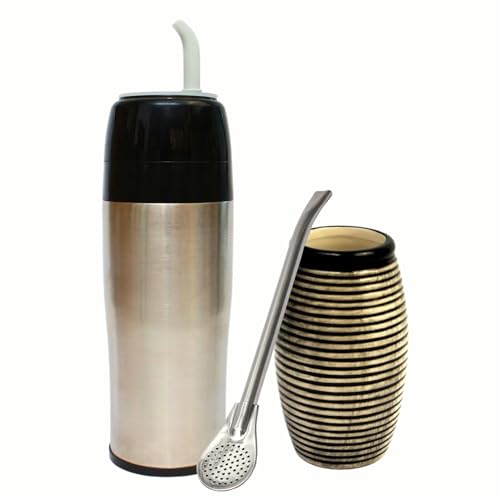 Gaucho Cebar Set d'extérieur - Yerbomos - Bouteille isotherme pour thé Yerba Mate 580 ml - Accessoire portable pour Yerba Mate - Gobelet en acier inoxydable avec paille Bombilla - Passe au