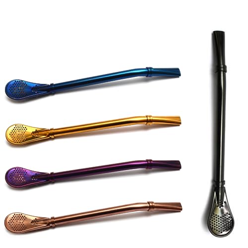 Gaucho Cebar Yerba Mate Paille à thé en acier inoxydable – Bombilla 5 couleurs différentes pour thé maté 15,5 cm