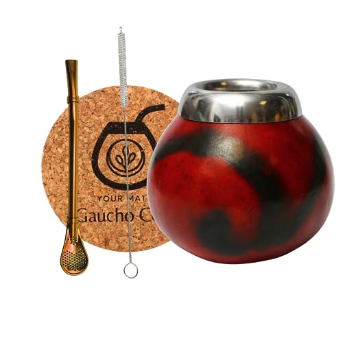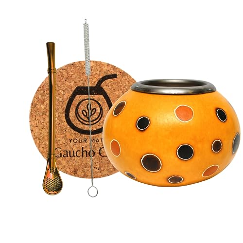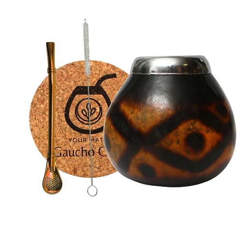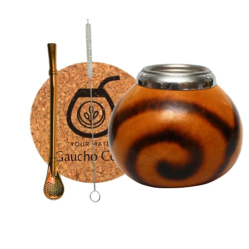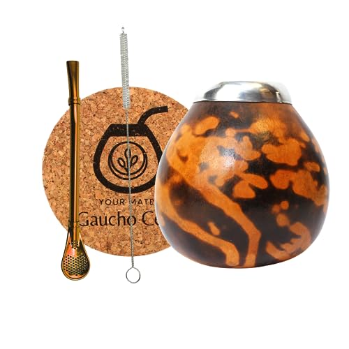 Gaucho Cebar Ensemble de tasses naturelles pour thé yerba maté | Tasse citrouille et paille en acier inoxydable Bombilla Straw | Accessoires, marron