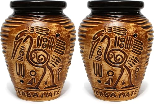 Mate Green AZTEK tasse en céramique 300 ml ● Thé maté ● Motif aztèque traditionnel (Lot de 2)