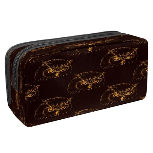 VAPOKF Trousse à crayons avec fermeture éclair pour garçons et filles, fournitures scolaires et de bureau, tigre Prowl on The Road, Tête de hibou sans couture, 2.3x8.2x3.9in/6x21x10cm, Trousse à