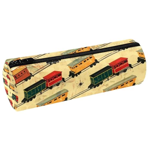 VAPOKF Trousse à crayons avec imprimé train on the road - En cuir synthétique - Trousse de maquillage pour femmes, filles, garçons, enfants - Fournitures scolaires et de bureau, multicolore