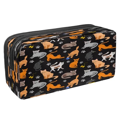 VAPOKF Trousse à crayons avec fermeture éclair pour garçons et filles, fournitures scolaires et de bureau, tigre Prowl on The Road, Chaton et empreintes de pieds colorés, 2.3x8.2x3.9in/6x21x10cm,