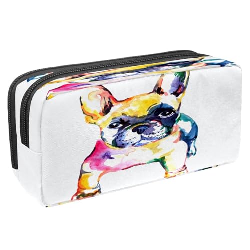VAPOKF Trousse à crayons avec fermeture éclair pour garçons et filles, fournitures scolaires et de bureau, tigre Prowl on The Road, Bouledogue français coloré, 2.3x8.2x3.9in/6x21x10cm, Trousse à