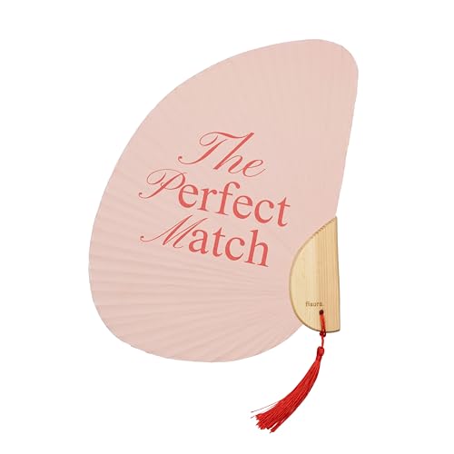 Fisura – Éventail élégant avec message "The Perfect Match". Accessoire de mariage rose en papier et bois. Parfait pour l'été, léger et raffiné. Dimensions : 21 cm x 29 cm.