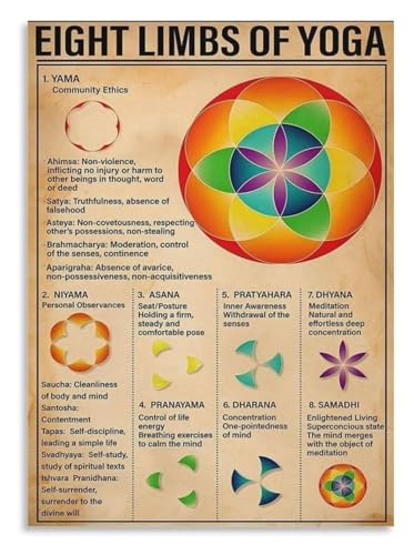 Inspirational Yoga Philosophy Poster, The Eight Limbs Guide for Practice & Life, Motivational Wall Art for Home Gym Office, Premium Canvas Decor(Unframed,12x18inch(30x45cm))
