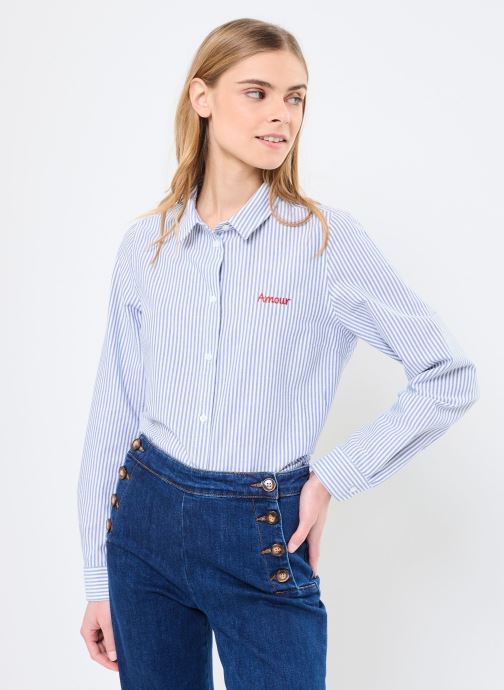 Pieces Vêtements PCIRENE LS SHIRT KAC FC pour Femme Female S 17136022-Bright White Stripes:SURF THE WEB - RED A