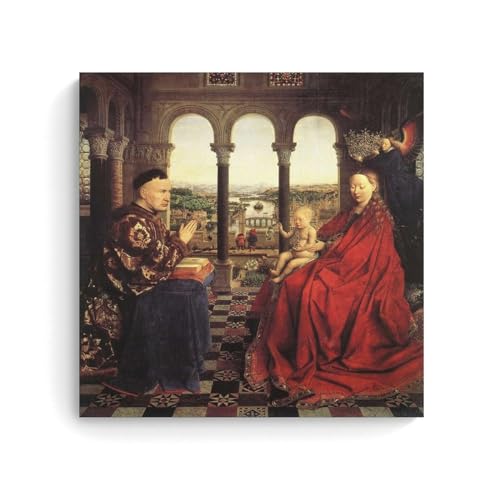 Jan Van Eyck Painter Works《The Virgin And Chancelier Rolin》Poster imprimé sur toile et décoration murale moderne pour chambre à coucher familiale (60 x 60 cm)