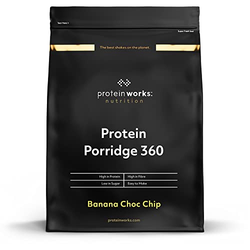 Porridge Protéiné 360 | Petit Déjeuner à Faible Teneur en Sucre | Vitamines Ajoutées | Faible IG, Avoine Complète | Riche en Fibres | THE PROTEIN WORKS | Banane et Éclats de Chocolat | 500g
