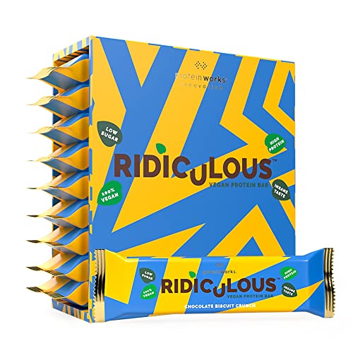 THE PROTEIN WORKS Barre Protéinée Vegan Ridiculous | 100% Vegan | Sans huile de palme | 15g de protéines et peu de sucre| Biscuit Chocolat Croquant | Boite de 9