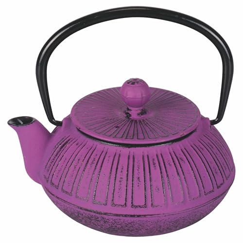 Petite théière en fonte à induction 1 l – Verseuse asiatique violette avec anse et filtre à thé en acier inoxydable – Idéal pour les thés en vrac