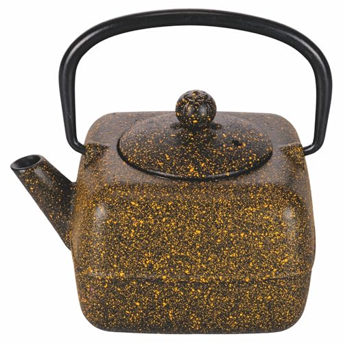 Théière 400 ml en fonte effet spray, poignée pliante, filtre en acier inoxydable, noir et jaune